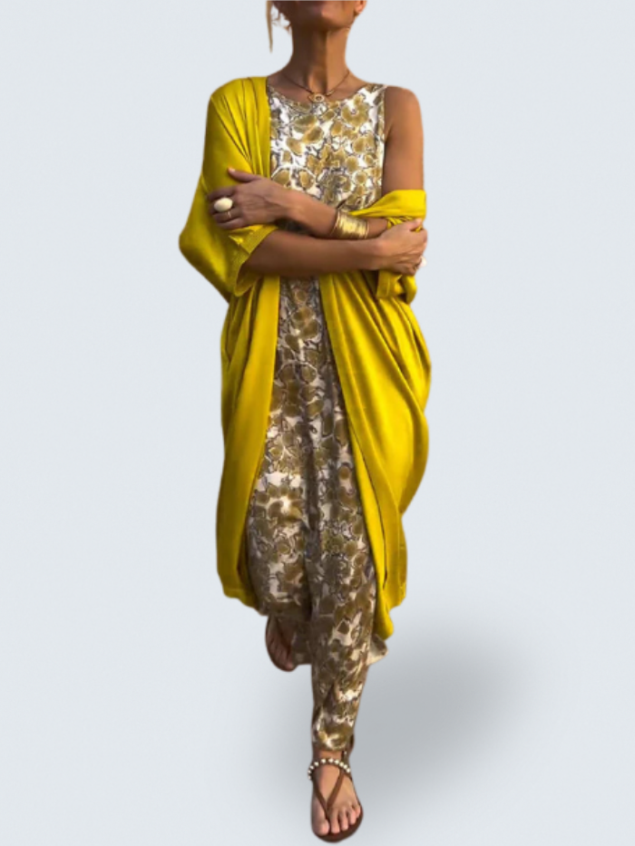 Have you ever wanted an outfit that combines elegance, comfort, and freedom in one perfect piece? The VIVIAN set is the answer. Designed for women who love to feel beautiful effortlessly, this two-piece set – featuring a long dress and flowing jacket – gives you lightness and sophistication every time you wear it.